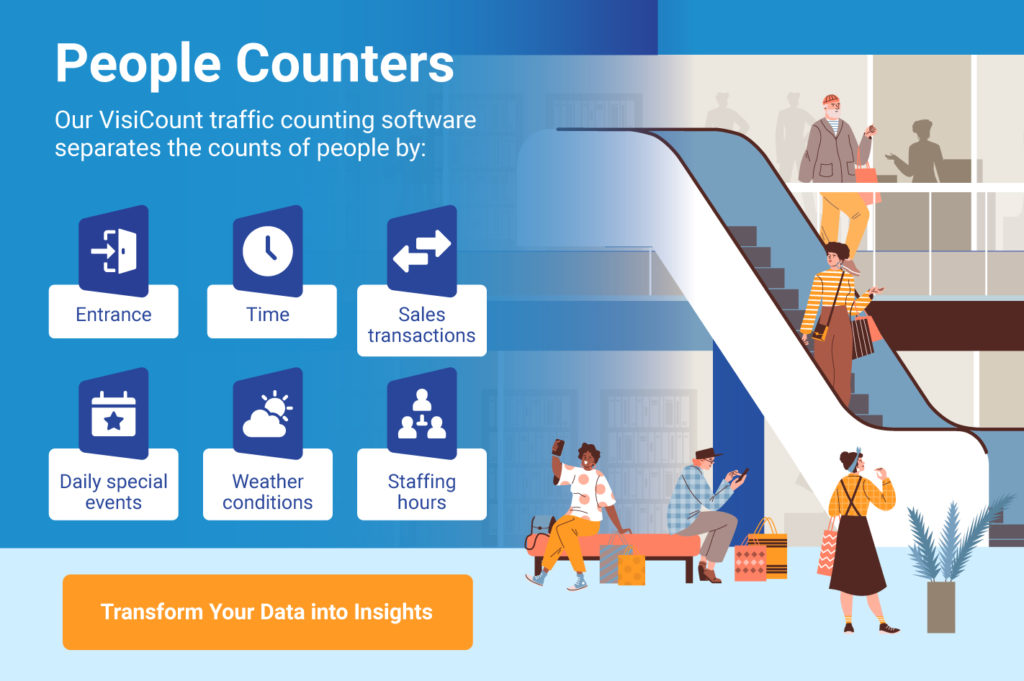 A people counter is the most effective tool malls can use to measure foot traffic and count the number of people at an event. This system allows you to monitor customer movement from when they enter the mall to when they exit. It also provides insights into how events influence visitor numbers.